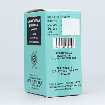 Kottakkal Ayurveda Manasamithra Vatakam is for stress related disorders, such as anxiety and insomnia. Any mental illness or hallucination. Makes the mind clear and fresh.
